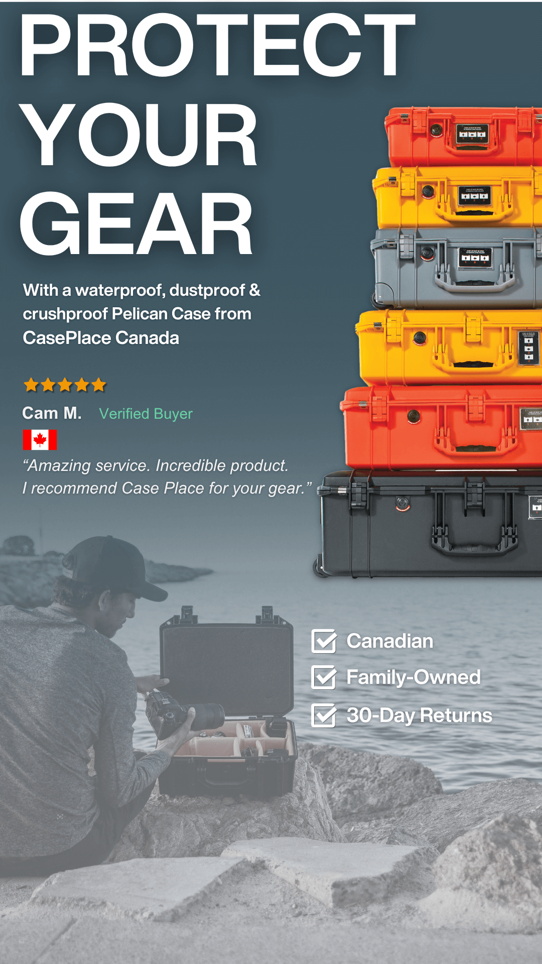 CasePlace Canada is an official online distributor of Pelican cases and Pelican lighting products in Canada. We supply all Pelican case models and lights— including tactical flashlights, headlamps, dive lights and safety lights for all industries. We have the complete line of Pelican cases, Pelican coolers, lights and accessories and will ship your order anywhere in Canada. Pelican cases are waterproof, dustproof, shockproof and, arguably....lifeproof! And Pelican's other awesome gear is just as tough. Made in North America with injection-molded polypropylene resin, Pelican sets the industry standard for protective case solutions. We are proud to represent this world-renowned brand and are confident you'll be completely satisfied with these products. Give them a try! CasePlace is the only online Canadian Pelican distributor to offer a 30-day return policy on all Pelican cases, coolers, and lights.
