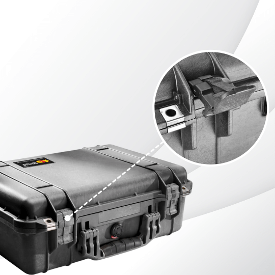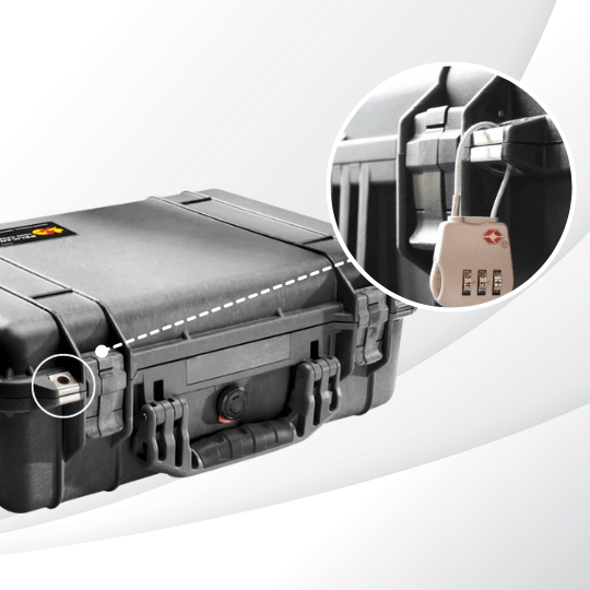 Secure your gear inside the Pelican 1740 Case. There are stainless-steel reinforced hasps beside every latch so you can secure your gear in a locked case using a standard combo/keyed padlock or TSA lock.
