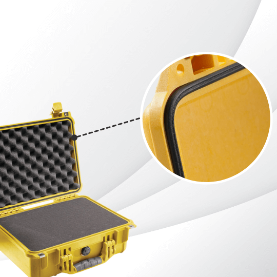 A silicone O-ring is fit into a groove in the lid of each Pelican case. This provides the famous IP67 waterproof rating that Pelican cases are known for.