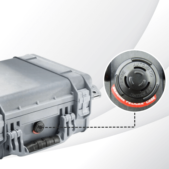 Your case stays dry and the air pressure inside remains equal to the outside air pressure—preventing a vacuum lock from forming when transporting your Pelican case between altitudes.